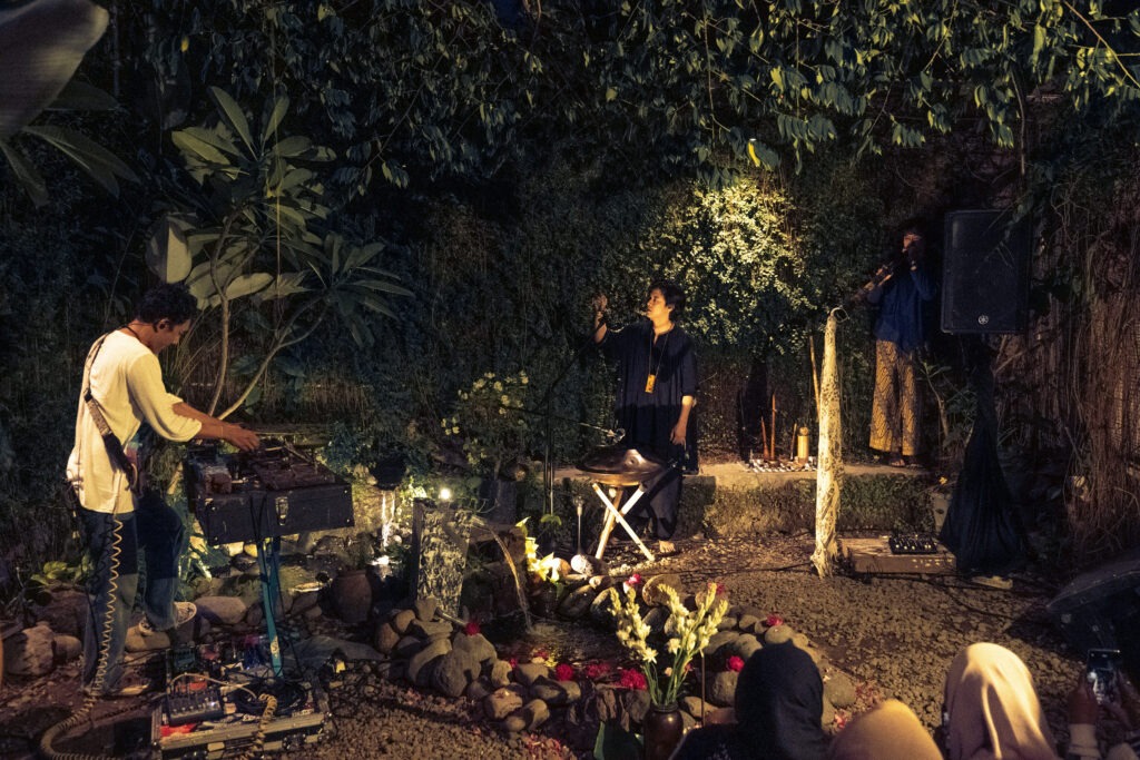 Di Yogyakarta, Persinggahan Rihlah di Suara Dewandaru berlangsung intim. Bisma dan Tridhatu menampilkan musik yang mengalun di ruang temaram, diiringi aroma wewangian alami.