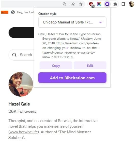 Saya memakai BibCitation (Automatic Citation Generator). Ini extension untuk Google Chrome. Buka dan install extension itu. Aman dipakai, nggak perlu register.