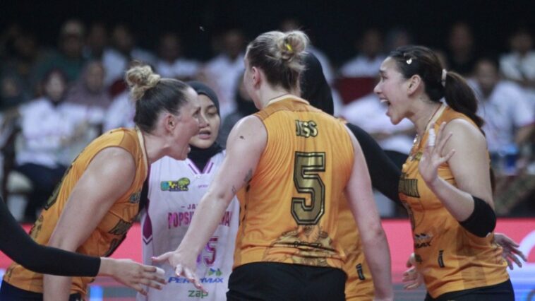 KEDIRI (jatengtoday.com) – Tim putri Jakarta Popsivo Polwan buka peluang ke grand final kompetisi bola voli PLN Mobile Proliga 2025 setelah mengalahkan Jakarta Electric PLN dengan skor 3-2 (25-23, 20-25, 19-25, 25-17, 15-13) pada babak final four putaran pertama di GOR Jayabaya, Kota Kediri, Jawa Timur, Minggu (20/4/2025). Kekalahan membuat kans Electric PLN mengulang pencapaian musim lalu semakin berat.