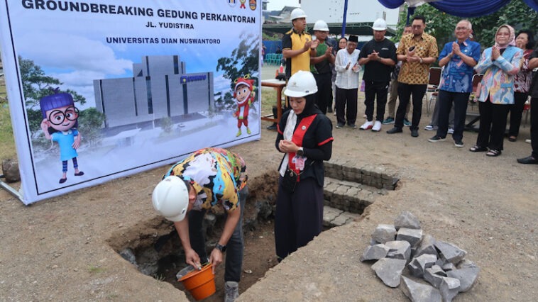 SEMARANG (jatengtoday.com) – Universitas Dian Nuswantoro (Udinus) Semarang terus memperkuat komitmennya dalam meningkatkan kualitas pendidikan dengan memulai pembangunan gedung ke-12 yang diberi nama Gedung L. Pembangunan ini secara resmi dimulai melalui seremoni peletakan batu pertama (ground breaking) di Jalan Yudistira, kawasan Pendrikan Kidul, Semarang, pada Jumat (13/6/2025).